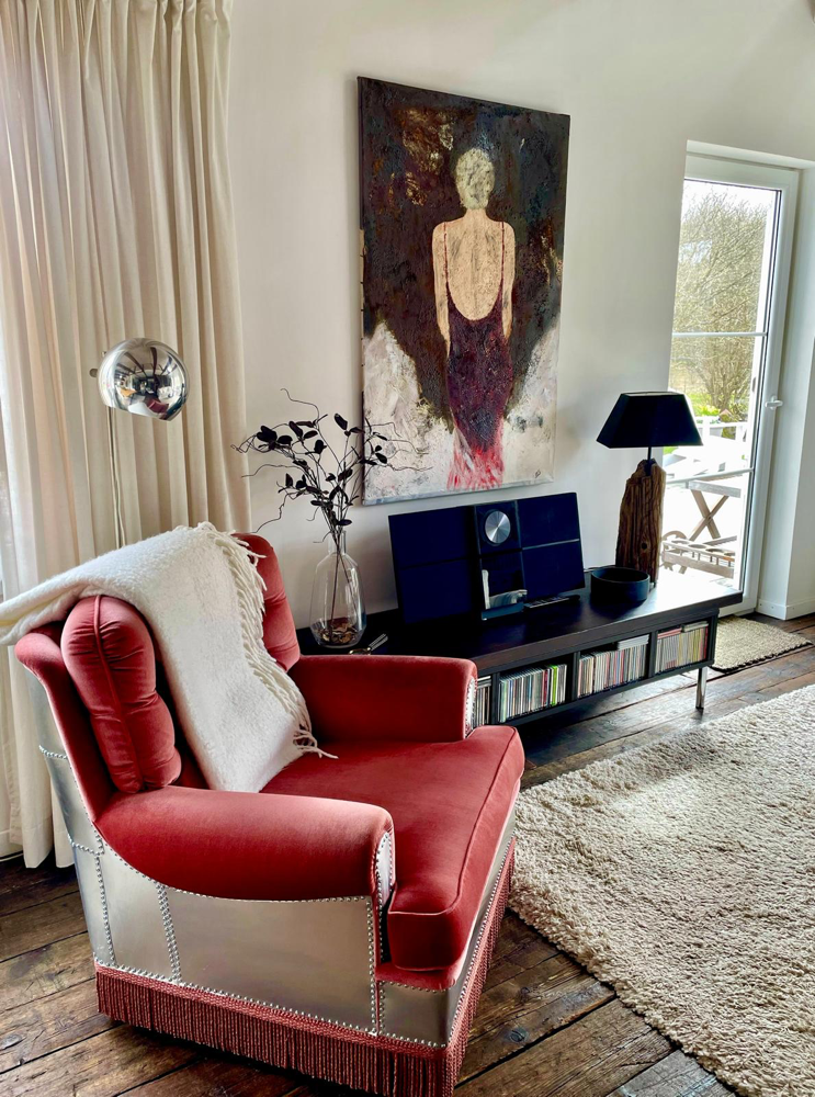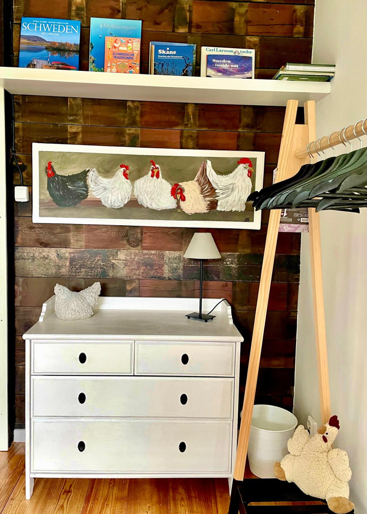 Im oberen Bereich finden Sie den Fernseher mit deutschen, schwedischen und dänischen Programmen. Wer will kann auch über „Chromecast“ von seinem Handy streamen. Eine bunte Auswahl an DVDs und CDs bietet Abwechslung zum Fernseh- und Radioprogramm. Wer gerne liest, findet sicher auch das eine oder andere Buch interessant oder studiert unsere Mappe mit Ausflugstipps.